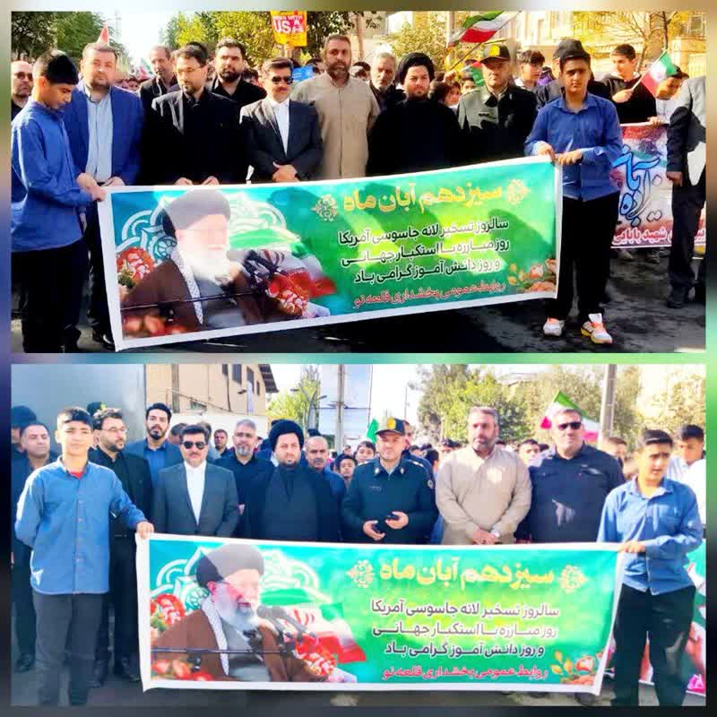 راهپیمایی ۱۳ آبانماه ۱۴۰۴ روز ملی مبارزه با استکبار جهانی و روز دانش آموز باحضورحجت الاسلام والمسلمین حاج آقا حسنی امام جمعه بخش قلعه نو