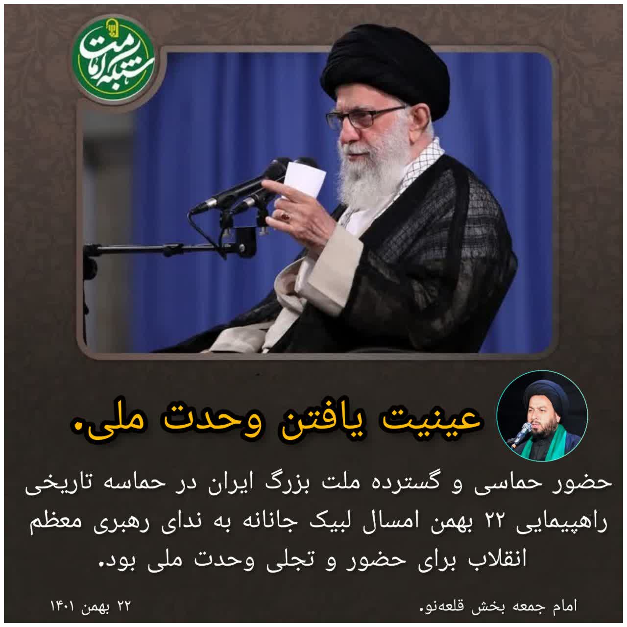 امام جمعه قلعه نو : حضور حماسی و گسترده ملت بزرگ ایران در حماسه تاریخی راهپیمایی ۲۲ بهمن امسال. لبیک…